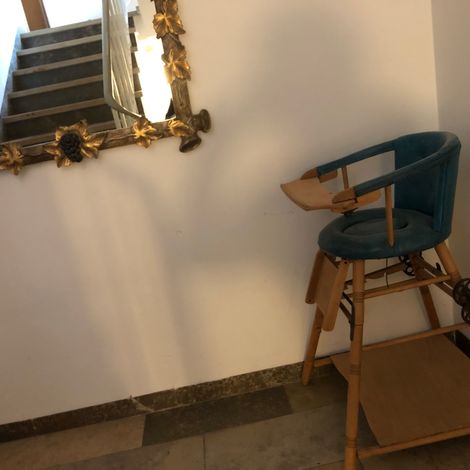 Erdgeschoss und Obere Rote Etage wurden vom Vorbesitzer in den 99er und 00er-Jahren sehr aufwendig renoviert: Viel Holz, Glas mit Reliefmuster und kunstvolle Metallleuchten. Ich habe das mit viel Respekt aufgefrischt. Ein Frankonia Look ist unübersehbar: rot, gold, Holz, Spiegel, Blumenmuster. Ich würde das liebevoll Frankonia Bling-Bling-Style nennen ;)