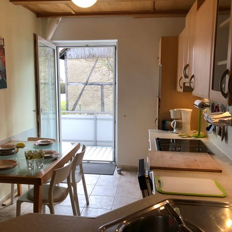 - Die Küche ist mit Küppersbusch-Siemens-Geräten ausgestatten und bietet reichlich Ablagefläche.