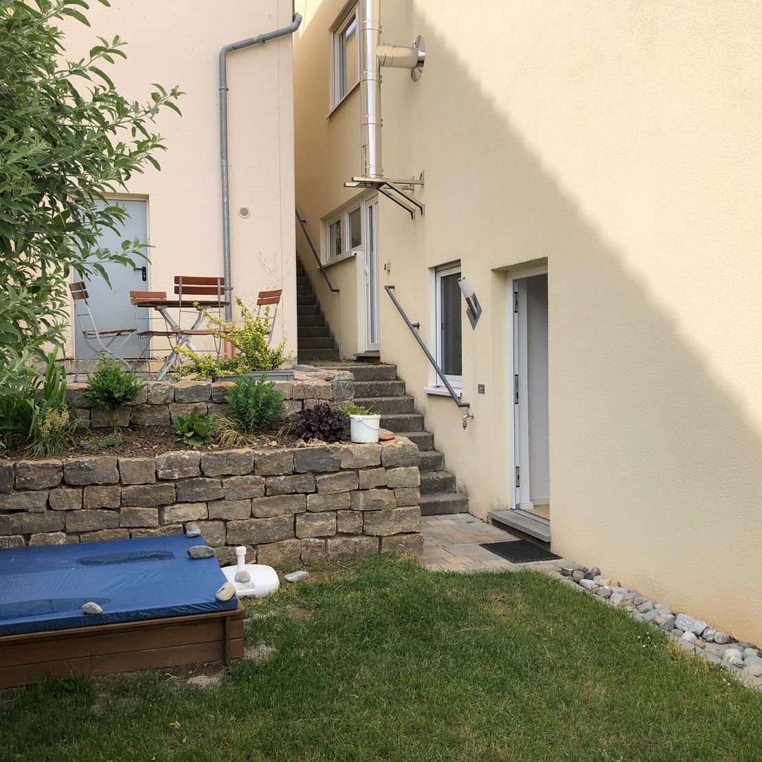 Im Stadtteil Kleinochsenfurt befindet sich diese 50qm frisch renovierte Wohnung. Mit direktem Zugang zu dem kleinen Garten, liegt sie im Untergeschoss. 21 Stufen führen zur der Wohnungstür. Sonnige Terrasse samt Gartenmöbel. Ihr Fahrrad gerne hier abstellen, allerdings hier ist nicht überdacht.