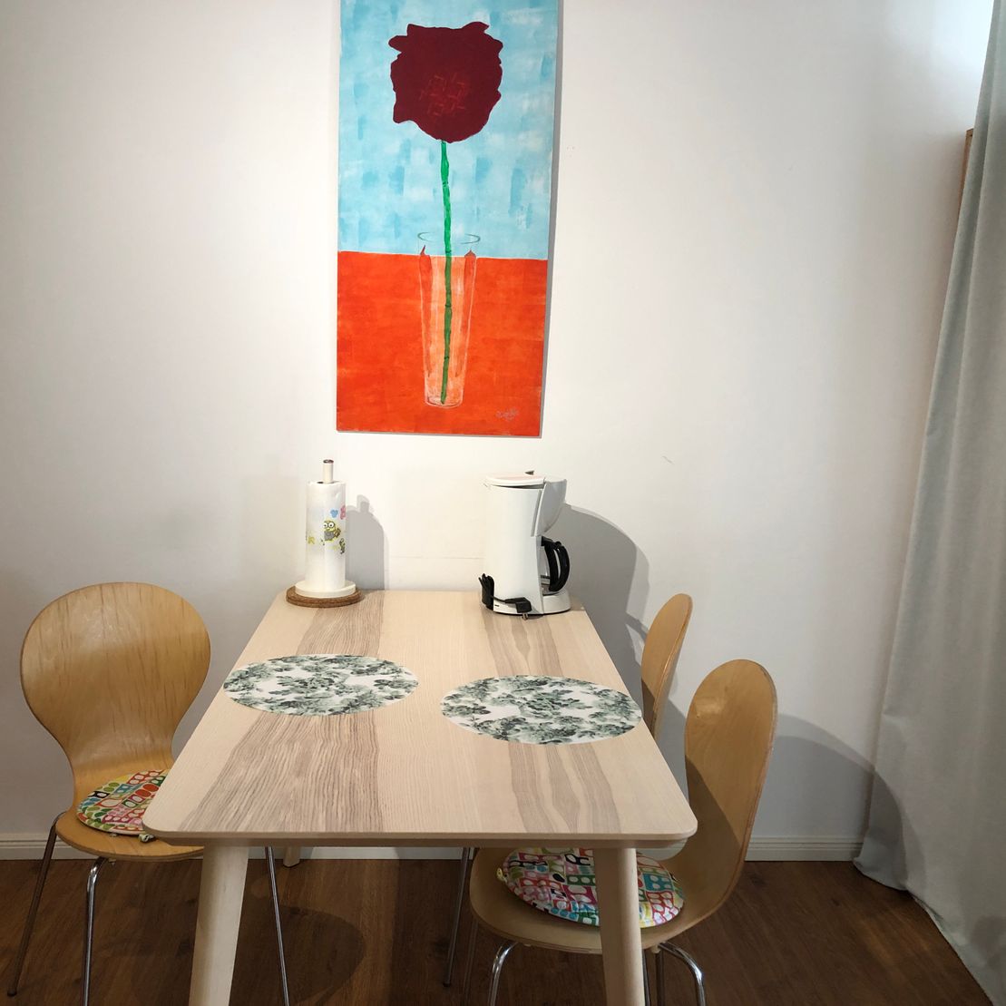 Großes 39qm Studio mit Balkon, das komplett neu und geschmackvoll mit Weiß- Pink-und Türkistönen eingerichtet wurde. In unmittelbarer Nähe 7min Fussweg befinden sich der Ochsenfurter Bahnhof, die Altstadt und das Kino Casablanca; 2km zu Klinikum. Sowie 200m zwei Discounter zum Einkaufen. Sonniger Balkon entzückt immer mit Blick auf Sonnenuntergang!